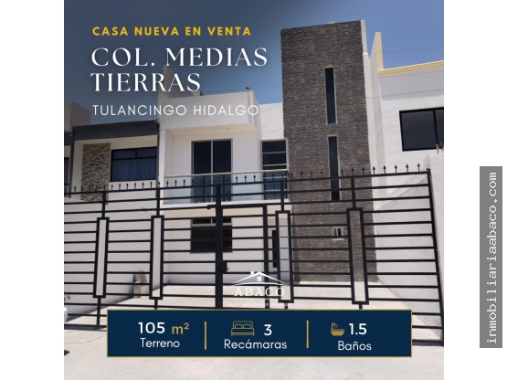 La colonia Medias Tierras, cuenta con todos los servicios de luz, agua, drenaje, cable, internet; es un lugar tranquilo para estar con tu familia. Está a solo 8 minutos del centro de la ciudad, a sus alrededores tiene escuelas públicas y privadas de educación básica, preparatoria y universidad de la UAEH, tiendas locales, farmacias, papelerías, tiendas de autoservicio, gasolineras, salones de fiesta, restaurantes, canchas deportivas, transporte público a pie de carretera a Tulancingo, Santiago, Cuautepec.