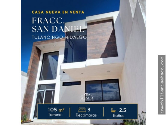 Casa ubicada en el Fraccionamiento San Daniel, a un costado del puente elevado y crucero a Acatlan, cerca de la Unidad Deportiva, a cinco minutos del Centro de Tulancingo, cerca de Plazas Comerciales como Plaza Patio, Walmart, Sams Club, Bodega Aurrera, con vías de comunicación rápidas..