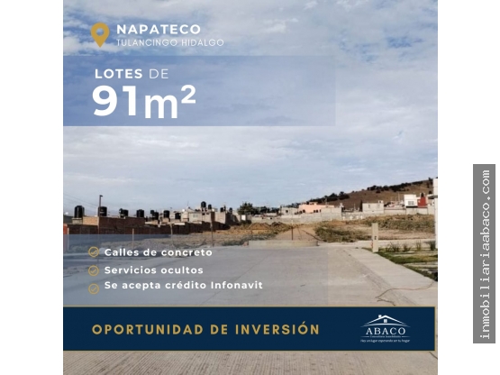 Nuevo desarollo, Privadas de Napateco. La zona ubicada a 15 minutos de la Ciudad de Tulancingo, en una zona tranquila y acogedora para toda la familia. Tendrás la facilidad de servicios como, escuelas cerca desde primaria hasta universidad, farmacias, hospitales, tiendas de autoservicio, gasolinera y todo tipo de comercio de primera necesidad.